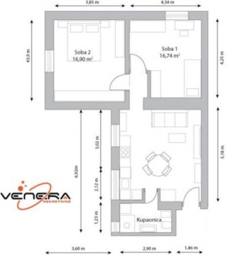2 soban stan 72 m2 Smičiklasova Ulica